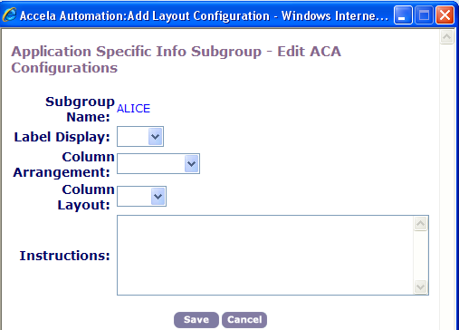 2. Click ACA Configuration next to the group or subgroup requiring layout configuration.