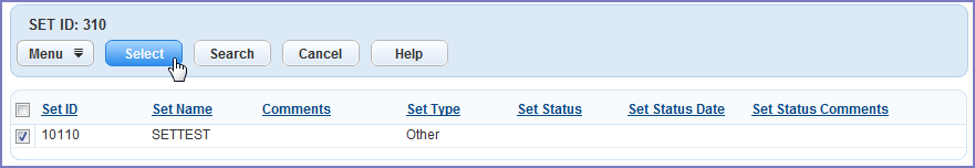 Access the Set details portlet either by clicking the Set link in the Main Links section at the top of your console or by clicking the Set tab on the record detail portlet.
