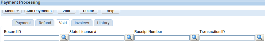 1. Search for the Record ID(s) or State License #(s) with the fees the individual wants to make payment on, and add POS items if needed.
